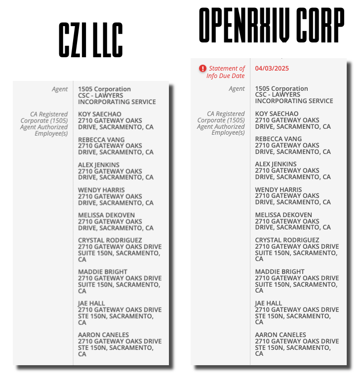 Despite bioRxiv and medRxiv having been founded by CSHL employees and established at CSHL for years, openRxiv Corp. was set up as a California non-profit using the same firm as CZI LLC, and the same people as contacts: